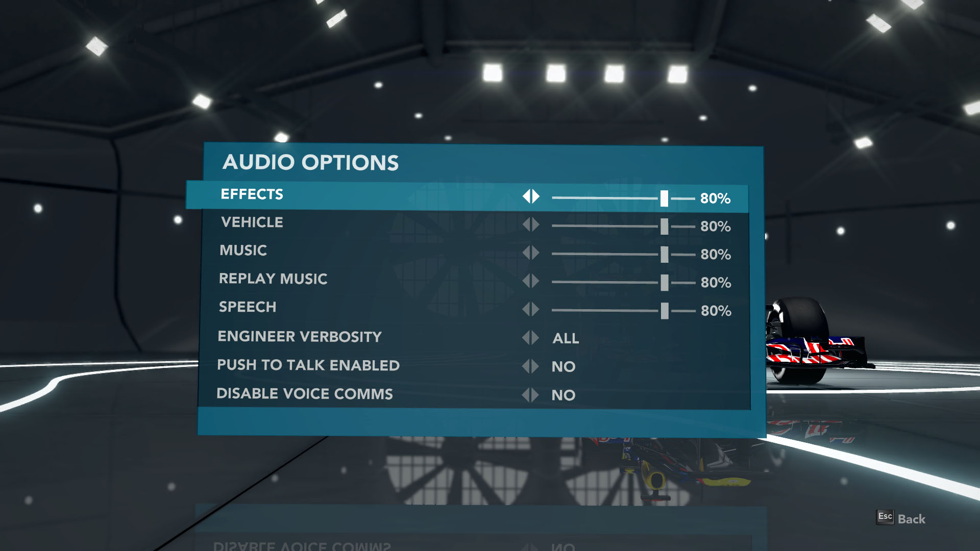 ゲーム設定:MY F1−AUDIO OPTIONS