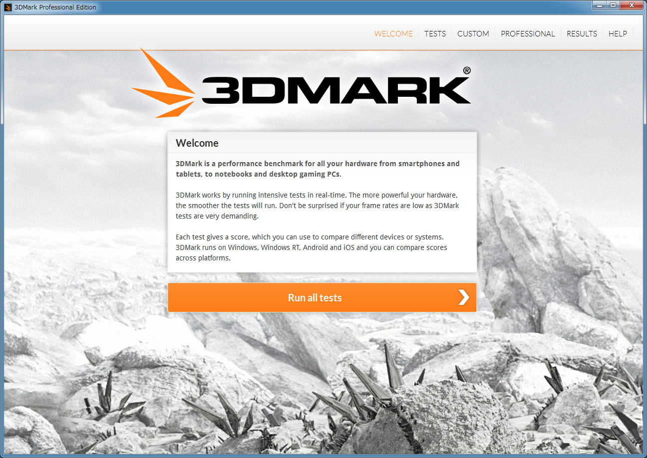最新世代の3DMarkが持つ最大の特徴は,DirectX 11ベースのテスト「Fire Strike」だけでなく,エントリークラスのPCを対象としたDirectX 10ベースのテスト「Cloud Gate」,そして,WindowsとAndroid,iOS間で横断的にテストできるDirectX 9/OpenGL ES 2.0ベースのテスト「Ice Storm」が用意されていること。しかもIce StormテストはAndroid端末やiOS端末用のアプリとしても用意されているため,「3Dゲームの動作を期待できるさまざまなデバイス」のテストに使えるのである。