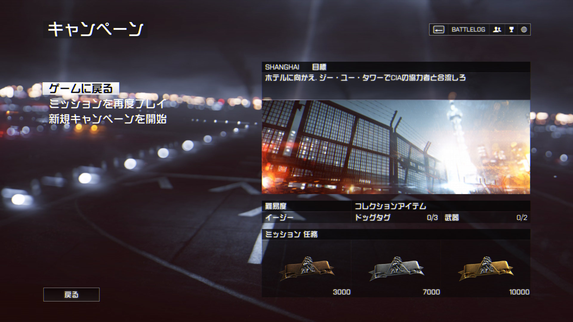 - (4)メインメニューから「キャンペーン」,そして「ミッションを再度プレイ」を選択