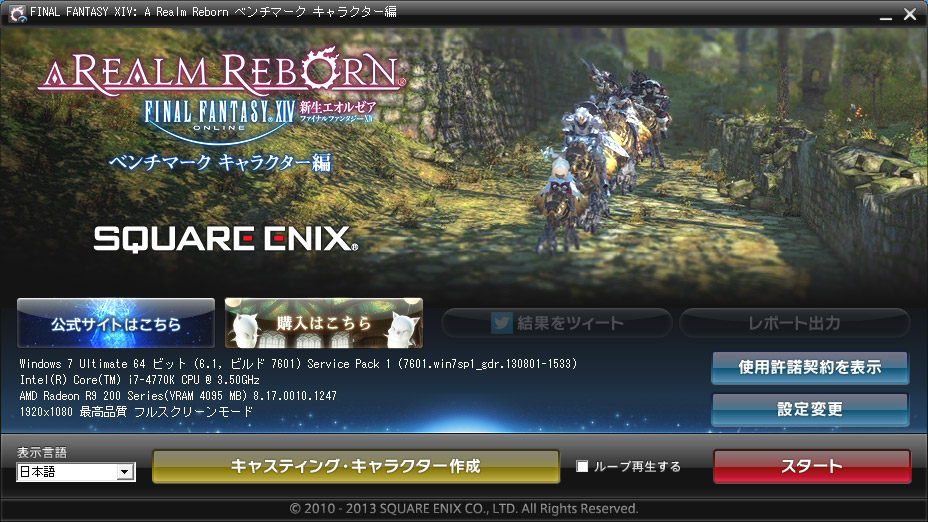 さて,具体的なテスト方法だが,公式ベンチマークソフトなので,下記のとおり,基本的には「実行する」だけだ。ただし,新生FFXIVベンチ キャラ編ではスコアに若干のブレも確認されたため,2回連続で実行し,その平均を採用する。