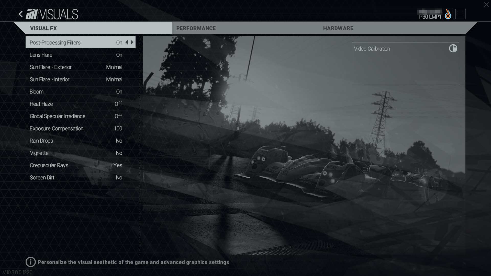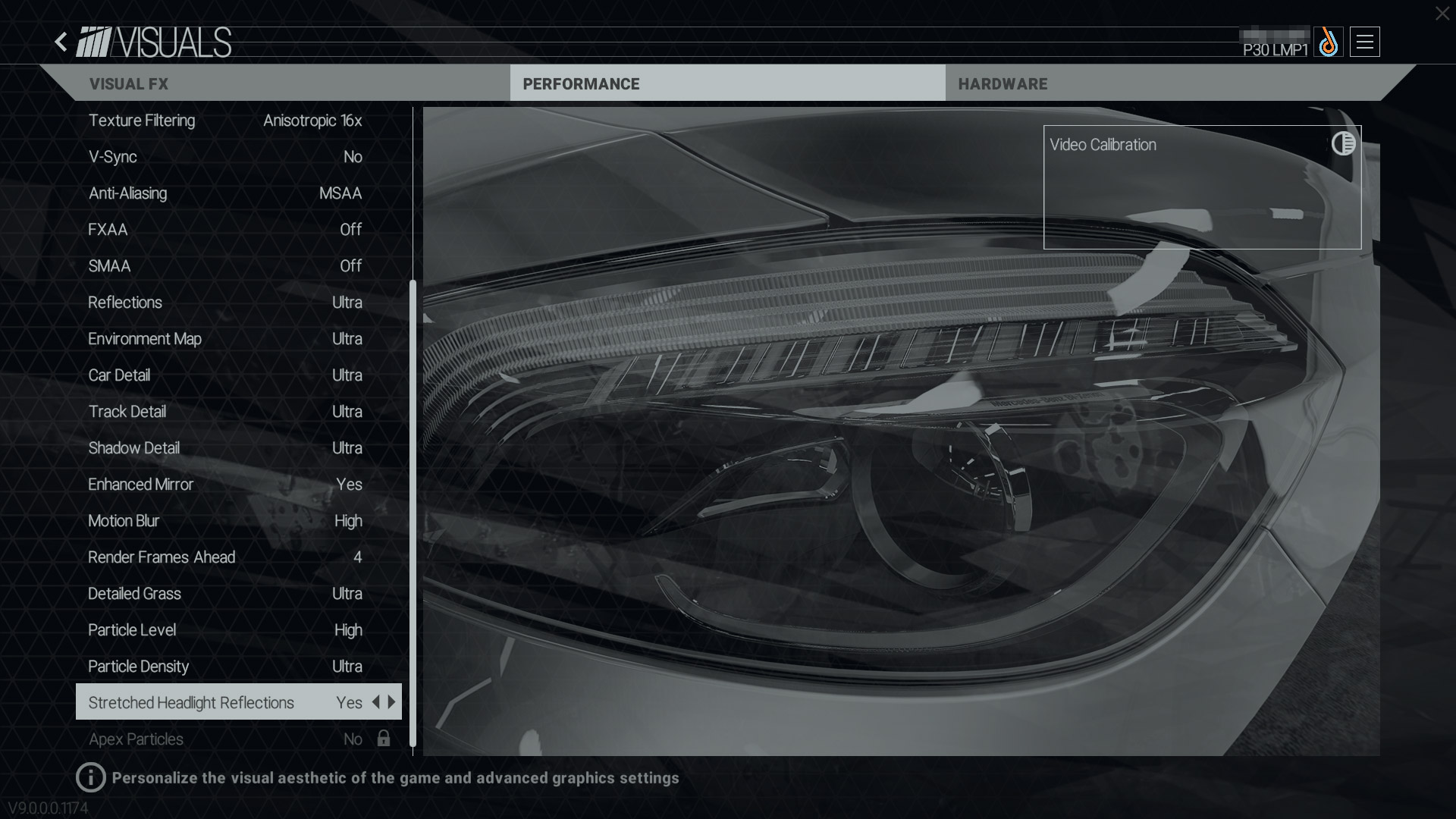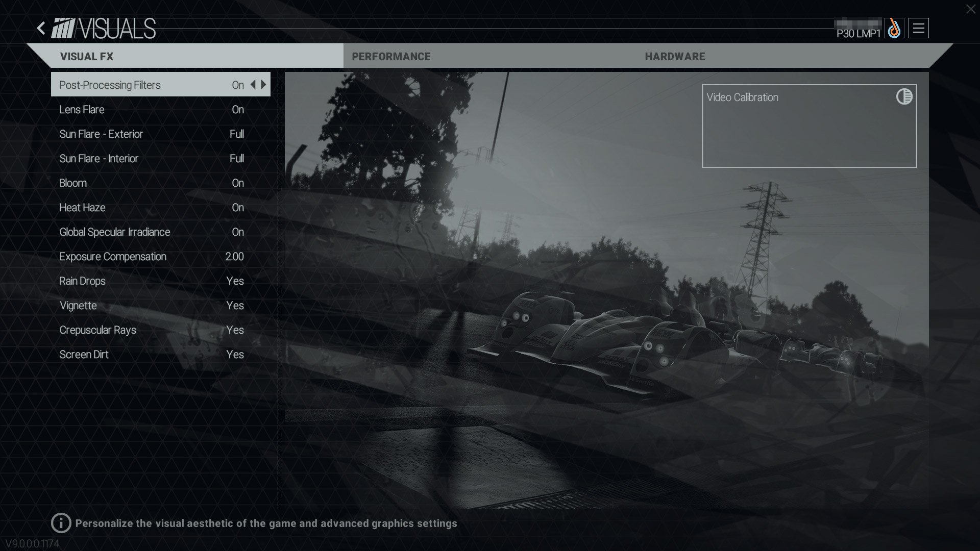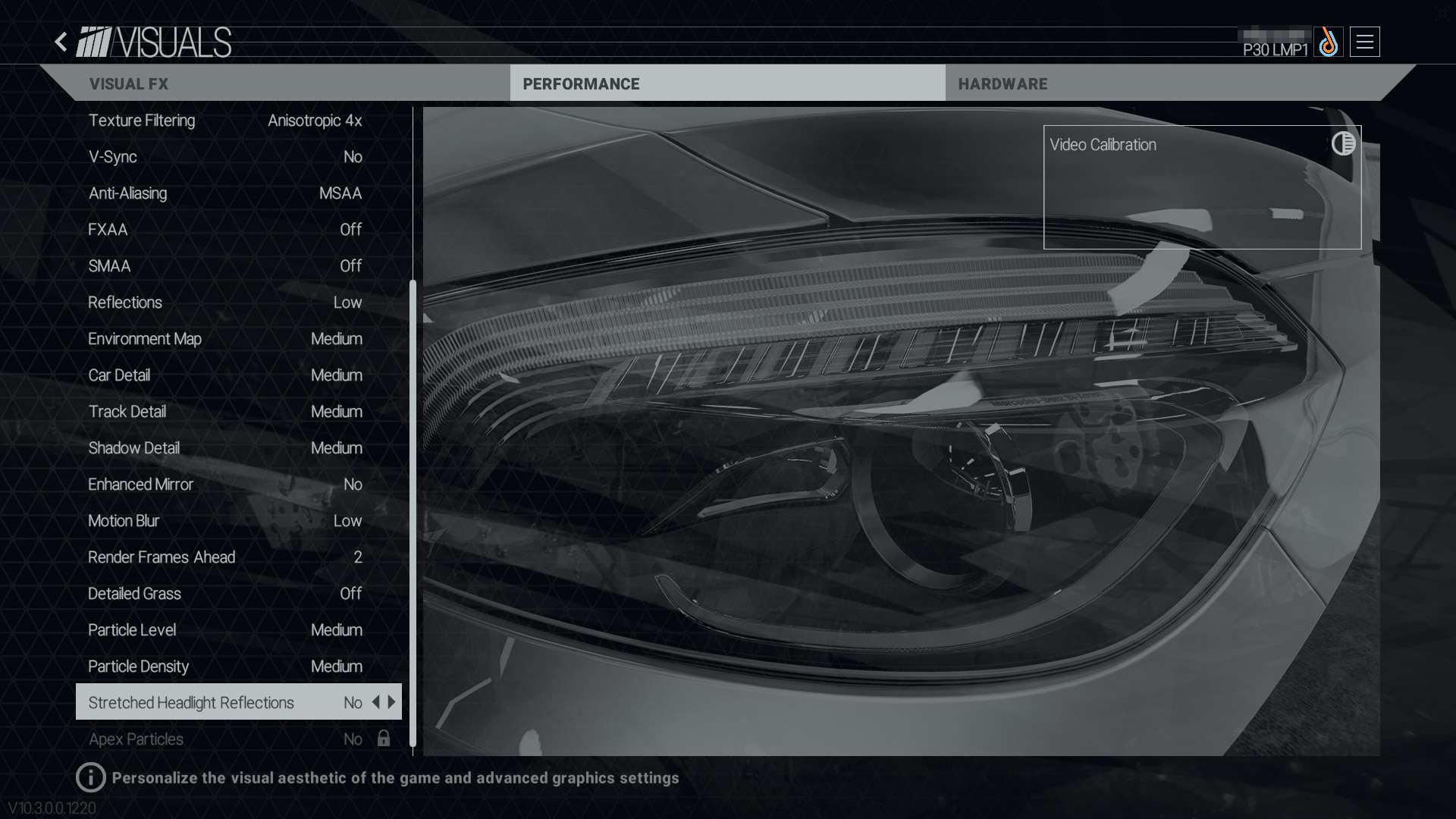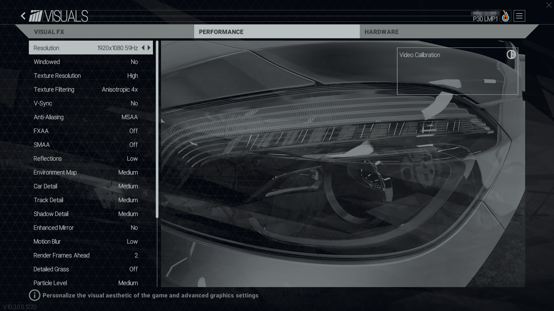 ゲーム設定:「Options & Help」−「Visuals」−「PERFORMANCE」