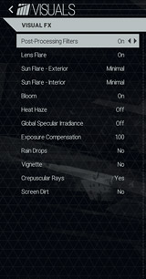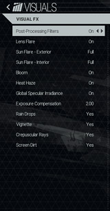 ゲーム設定:「Options & Help」−「Visuals」−「VISUAL FX」