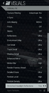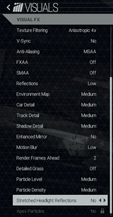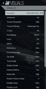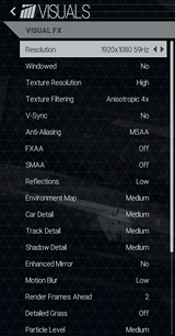 そんなProject CARSのテストにあたって行ったグラフィックス設定は以下のとおりとなる。