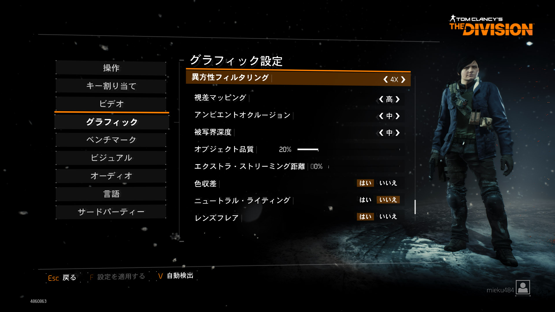 長々と記したが,基本的には「グラフィック設定プリセット」でプリセットを選択し,あとは念のため「ディスプレイ設定」以下を確認するだけという理解でいい。