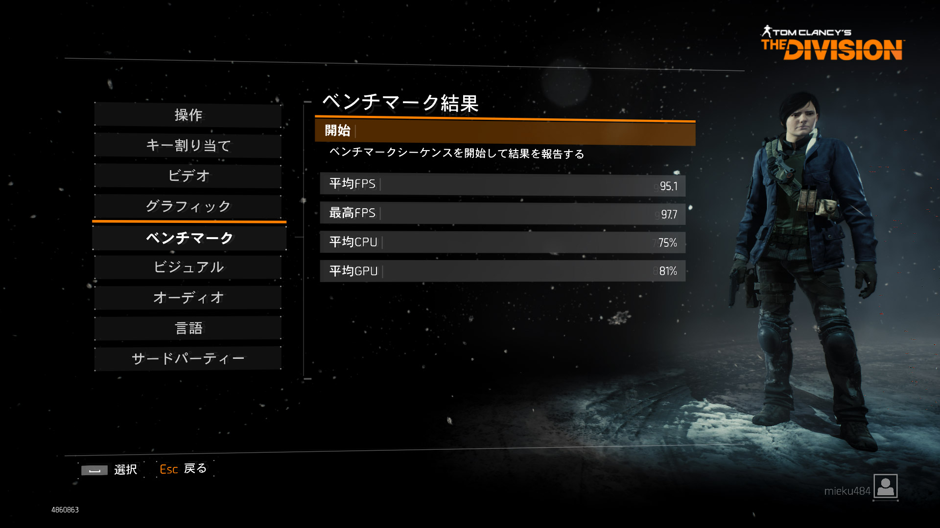 - (4)ベンチマーク終了後に表示される「平均フレームレート」をスコアとして採用する