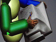 一般的なキャラクターアニメーションは,それこそ3Dアニメーションソフトで作られた「剣をいったん上に振り上げて,その後振り下ろす」などといった特定の動きを“なぞる”だけなので,外界の物理的な問題にはまったく関与していない。モーション再生の“垂れ流し”のため,戦闘シーンなどにおいて,敵や味方に自キャラがめり込んだりする光景は,多くの人が普段よく目にしているだろう。それがモーション再生の限界でもある。