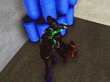ところが,「ラグドール処理で移動したあとに立ち上がる」といった,一見当たり前の動作が難しかったと,Boxerman氏は指摘する。「ラグドール処理で移動したあとに立ち上がる」場合,ラグドールとモーション再生の組み合わせになるわけだが,ラグドールでは外界の影響を忠実に反映するので,どのような姿勢で転がっているのか推測できない。仰向けに,大の字に倒れた状態を想定した起き上がりモーションを用意していても,投げ出された結果,身体を曲げて脚の間から頭が出ているような状態で転んでいる人に,そのモーションは適用できないわけで,起き上がるモーションを作ろうにも,どんなモーションを用意しておけばいいのか分からないのである。
