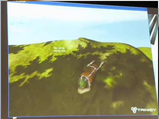 今回発表された最新版のHumanIK 4.5では,さらなる進化を遂げているようだ。デモでは匍匐全身を地形に沿った自然な状態で実現できることが示されていた。これは,これまで手足だけで行われていた外界との接触判定を,身体の各部で自由に設定することができるようになり,より柔軟な状況対応が可能になって実現できたものだそうだ。
