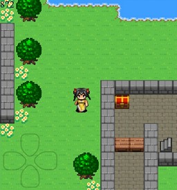 現在のRPGサンプルはマップ内を端から端まで歩くタイプですが,上に抜けると下から出る感じで上下左右ががつながった構造のマップとしています。理屈は簡単で,マップを縦横2倍に継ぎ足して,端に近づいたら,データがつながっている端の部分まで移動させているだけです。
