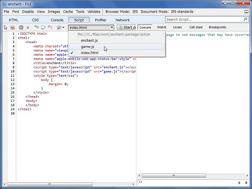 ここにきてInternet Explorer 9(以下,IE9)もようやく正式版がリリースされ,主要なWebブラウザでのHTML5サポートがほぼ出揃いました。今回はenchant.jsでのゲーム開発に当たってIE9を主に使っていきますが,基本的にはほかのブラウザでも大差はありません。IE9は,Windows XPなど古いOSでは動作しませんので,Windows XP以前のOSを使用している人はほかのブラウザを導入してください。