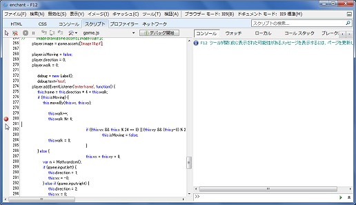 ブラウザとテキストエディタだけでゲームを作れるとはいうものの,いざやってみるとJavaScriptプログラムのデバッグは大変です。最近ではたいていのWebブラウザに開発者ツールが標準装備されるようになっていますので,ぜひ利用したいものです。