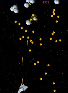 もののついでということで,Synthe版の発表時に割愛していたゲーム自体の解説も少ししておきましょう。ゲームの内容は,見てお分かりのとおり,縦スクロール(しないけど)シューティングゲームです。ゲームの仕様としては,縦シューの本質的なところだけ残してあとは削ったようなものになっています。
