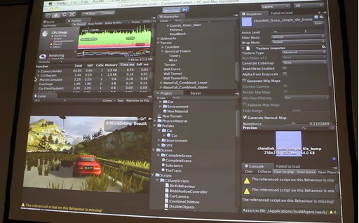 また,展示会場では,まもなく登場するというUnity 4.3が展示されており,プロシージャルテクスチャ機能などが確認できた。PCなどでは実行時にテクスチャが生成され,非常に小さなデータサイズとなっていた。スマートフォンなどではビルド時に生成されたものが組み込まれるようだ。