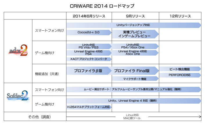 CRI,ゲーム開発向け「CRIWARE」の2014年のロードマップを発表。スマホ/コンシューマのマルチプラットフォーム開発環境を強化する方向