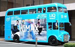 報道関係者向けのモバイルWiMAX体験用(兼,モバイルWiMAXの告知用)バスが,今週いっぱい,都内を走るとのことだ