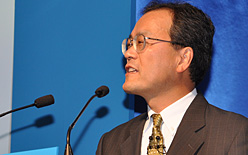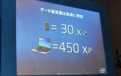 発表会には,Intel本社で営業とマーケティングを統括するSean M.Maloney(ショーン・マローニ)上席副社長(Executive Vice President, Chief Sales and Marketing Officer, Intel)が登壇。「なぜ3Gよりも高速なモバイルネットワークが必要か。スマートフォンは音声通話の30倍,ノートPCは同450倍ものネットワーク帯域幅を必要とするからだ」と,モバイルWiMAXの重要性をアピールしていた