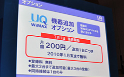 - 機能追加オプション:追加の端末について,月額200円で,2台まで追加できる(※最大3台利用可能で,同時に接続できるのは1台のみ)。7月1日サービス開始予定で,2010年1月末まで利用料無料