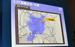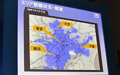「エリアは『きれいにできた』と言えるレベルには達していない。基地局を一つずつ立てているが,とくに関西地区を中心に,当初の予定より(基地局の数は)幾分少なくなっている」と田中氏。7月1日以降は,ピンポイントで「その場所がカバーされているか」をチェックできるWebページを立ち上げ,このページ,もしくはTry WiMAXで,サービス状況を確認してほしいと呼びかけていた。
