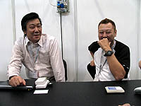 僕のサインなんかもらって何が嬉しいのかよく分かんないんですけど。そういえばおととい,オープニングセレモニーでゲーム音楽コンサートがあって,植松さんのサイン会があったんですけど,すごい行列ができちゃってましたね。僕らはさっさと外に出ちゃって,「大変そうだなぁ」って言いながらビール飲んでました(笑)。