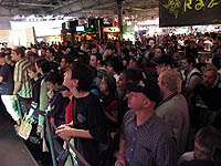 その30分後,我々4Gamerスタッフが会場のFFXIブースに直行してみると,そこはすでに大変な人だかり。予定どおり13時30分になると田中氏が登壇し,サイン会が実施された。あまりの人の多さに,期待どおり途方に暮れた風の田中氏であったが,まさにヨーロッパでのFF人気を裏付ける大盛況ぶりであった。