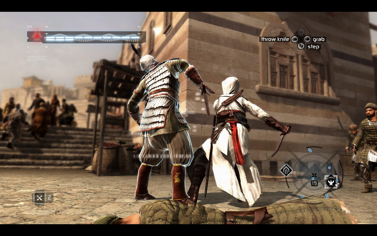 いろいろあって,やっと重い口を開いたアル・ムアリムによれば,アルタイルが暗殺してきた奴らの間には,アサシン教団と同じような血の誓いがあったというのだ。仕切っていたのはテンプル騎士団で,彼らは世界を支配しようとしているのだ。そのことをアルタイルに説明しなかったのは,自力で真実を見つけ出し,理解してほしかったためだとか。