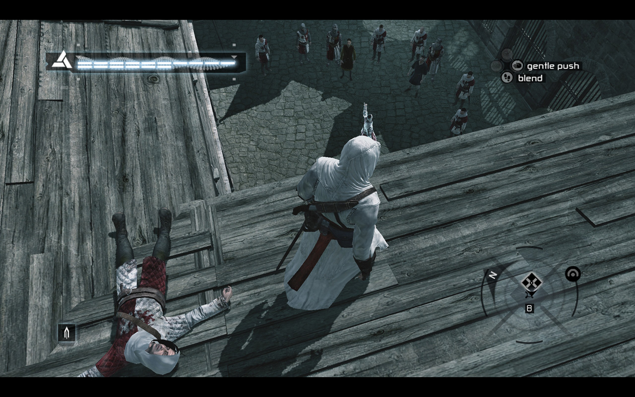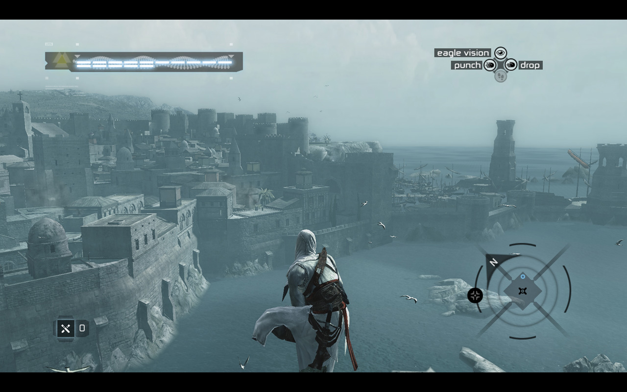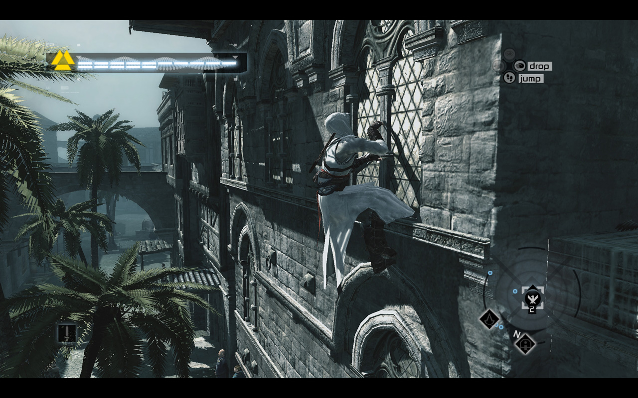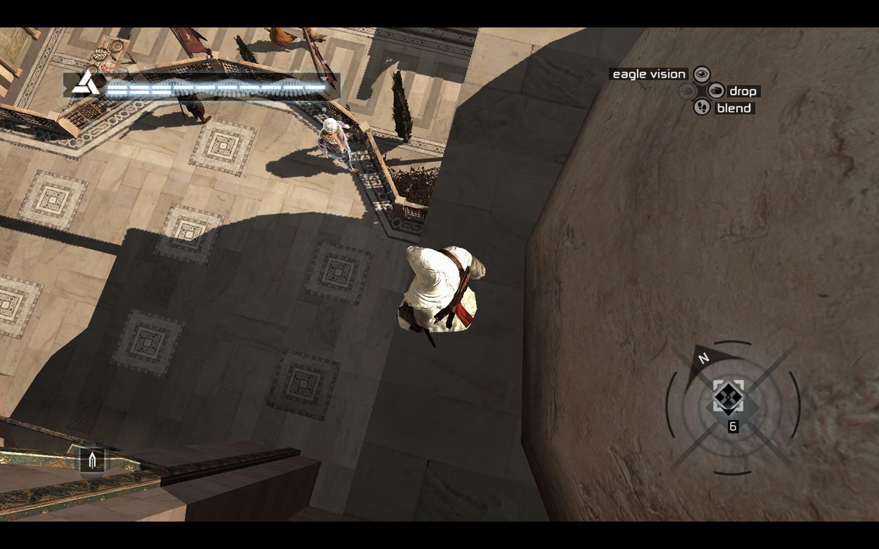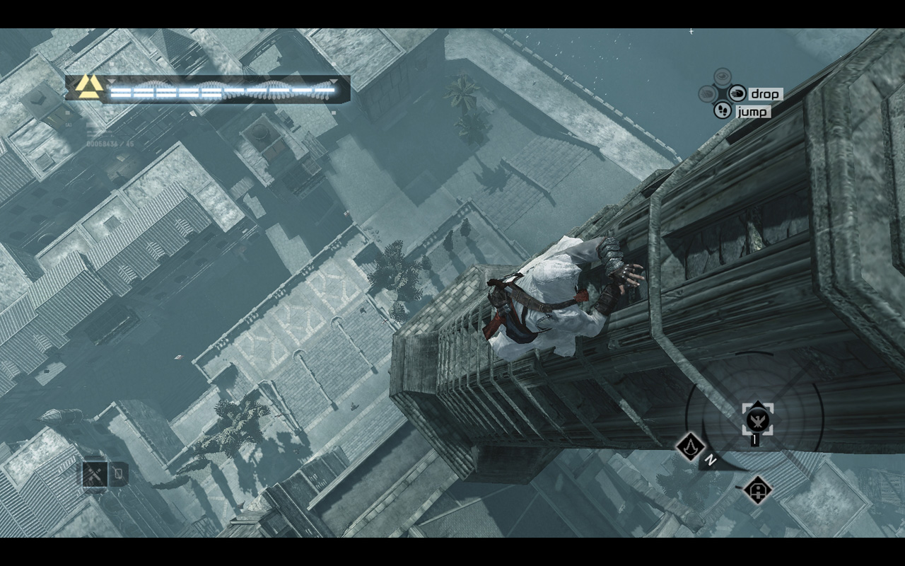 生来,高いところが苦手な筆者だが,苦もなく登った降りたりできるアルタイルの操作はとても気持ちがよく,壁だの塔だのを見つけると無性に登りたくなるから困る。この気持ち,エベレストに初登頂したサー・エドモンド・ヒラリーの言葉を借りれば「そこに壁があるからだ」となるだろうか。だろうか,じゃないね。