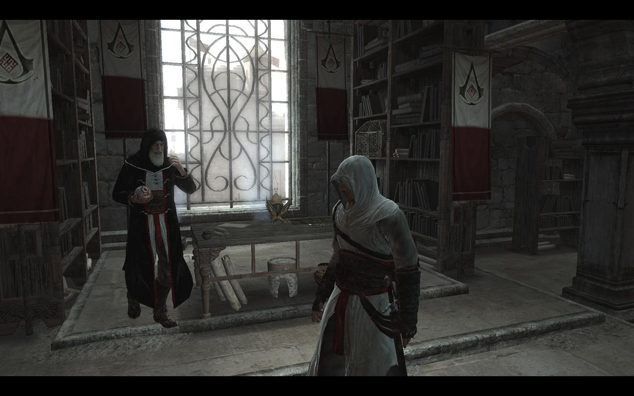 マシャフに戻り,アル・ムアリムへ報告するアルタイルだったが,意味不明な言葉を残していく連中になんとなく解せない思いを深めていた。アルタイルへの質問にはっきり答えない大導師アル・ムアリムへの強い不信感がついに爆発。