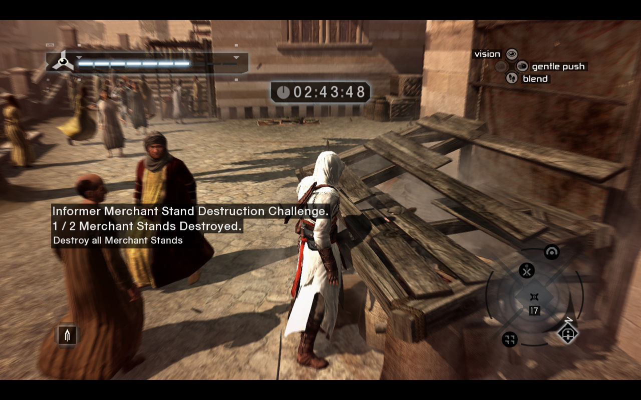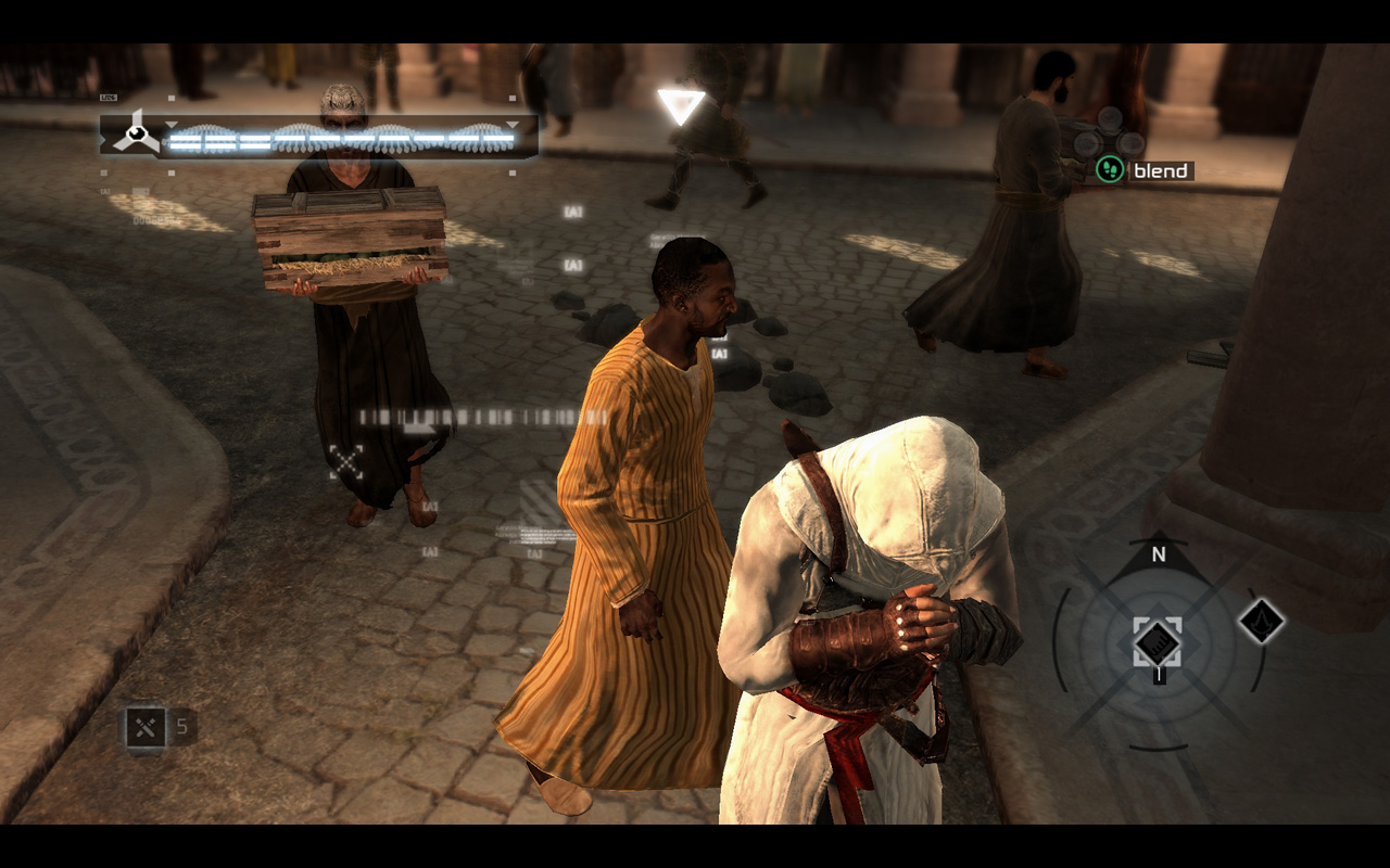 任務実行までにスリ,尋問,盗聴など,念入りな準備が求められるのはご存じのとおりだが,ここに取り上げるのが下準備には欠かせない「情報提供者」。アルタイルと同じアサシン教団に属する兄弟から課題が出され,それをクリアすると情報が手に入るというシステムだ。課題というより,面倒に陥ったり,都合が悪くなったり,うまくいかなかったりしている兄弟の任務や野暮用を代わりに片付けてあげる「使いっぱ」みたいなものだ。本文にも書いたが,ほんと,アサシン教団は使えないヤツばっかりだと思う。