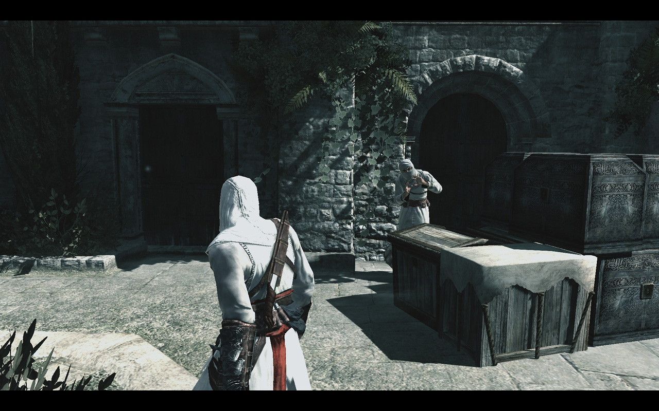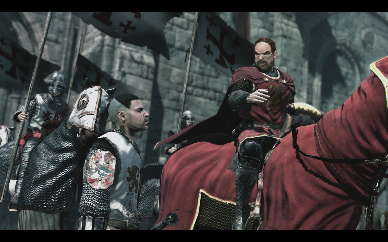 いつもどおりに得た情報によると,モンフェラート侯ウィリアムはリチャード王の砦の中にいるが,砦は厳重な警備が敷かれているうえ,どの入り口も完全に封鎖されており,入るには壁を越えるしかないらしい。まあ,アルタイルの身体能力を生かせば,そんなのちょちょいのちょいだが。最近もリチャード王と一悶着あったらしく,以来,自身の周りを軍勢で固めているのである。臆病なヤツだ。