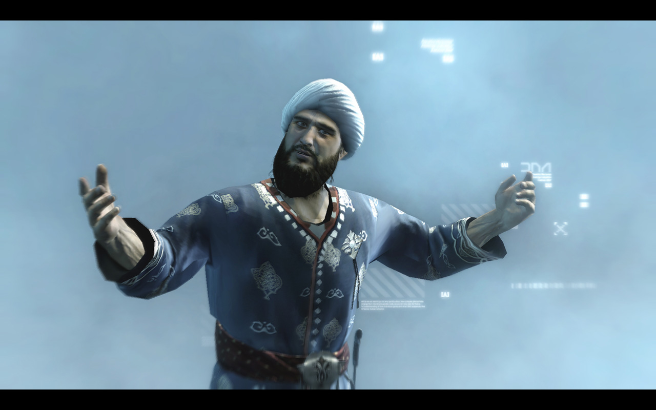 恒例,謎の遺言シリーズ。アブル・ヌクドは,これは復讐ではないと言い残す。自分が化け物扱いされるようなことを許す神のために金を出せないとも語るが,では,彼の金は何に使われていたのだろうか? さらに彼は,自分のしていることは,アルタイルの任務と同じであり,わずかな犠牲が大多数のためになり,大いなる善のためのささやかな悪なのだという……。はい,終わり。