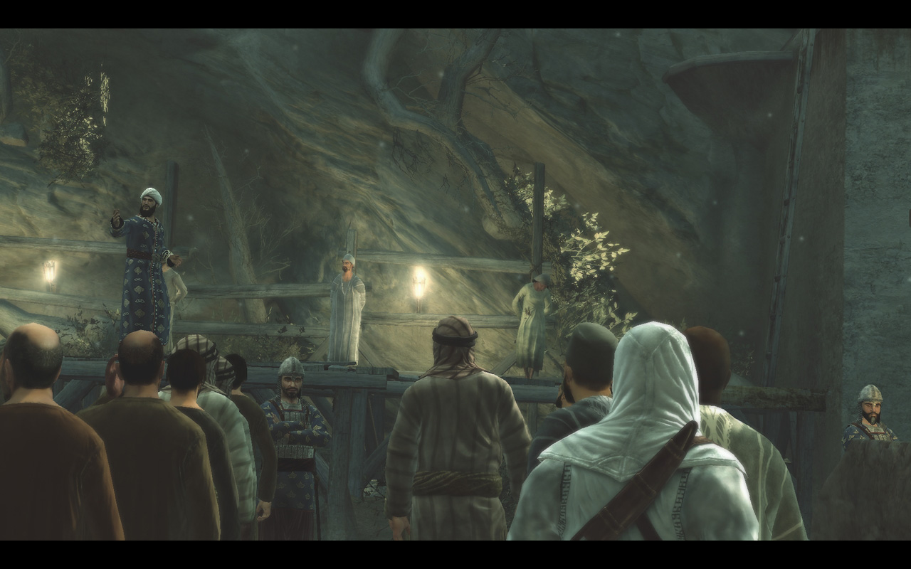 今日執り行われる公開処刑の罪人の中にはアサシン教団の兄弟も含まれており,アル・ムアリムは彼を救うことも望んでいる。実際の救出作戦はほかの部下にやらせるので,彼が処刑されないようにしてくれりゃいいとのこと。チャンスを窺いながら,マハド・アッディーンご本人の処刑を執り行うことにする。