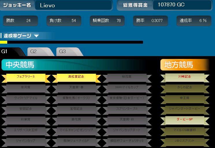「Gallop Racer ONLINE」に戦績が分かるグレードレースリスト