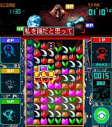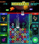 次々に降り注ぐメテオ(ブロック)を上下左右にずらし、同じ色同士をタテかヨコに3つ揃えて打ち上げよう!