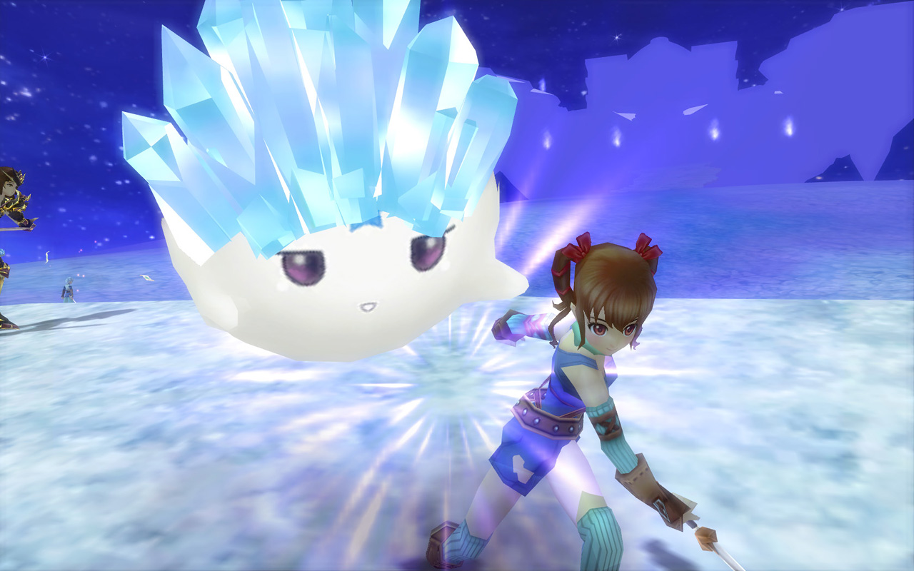 星界では簡単な戦闘も発生するが,まず戦闘不能になることはない。それにしても初期装備のスカートは短すぎやしないだろうか