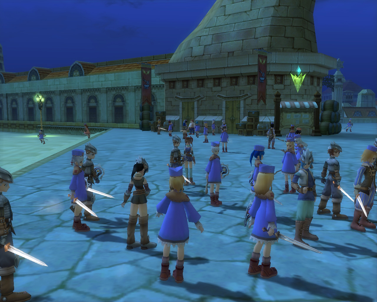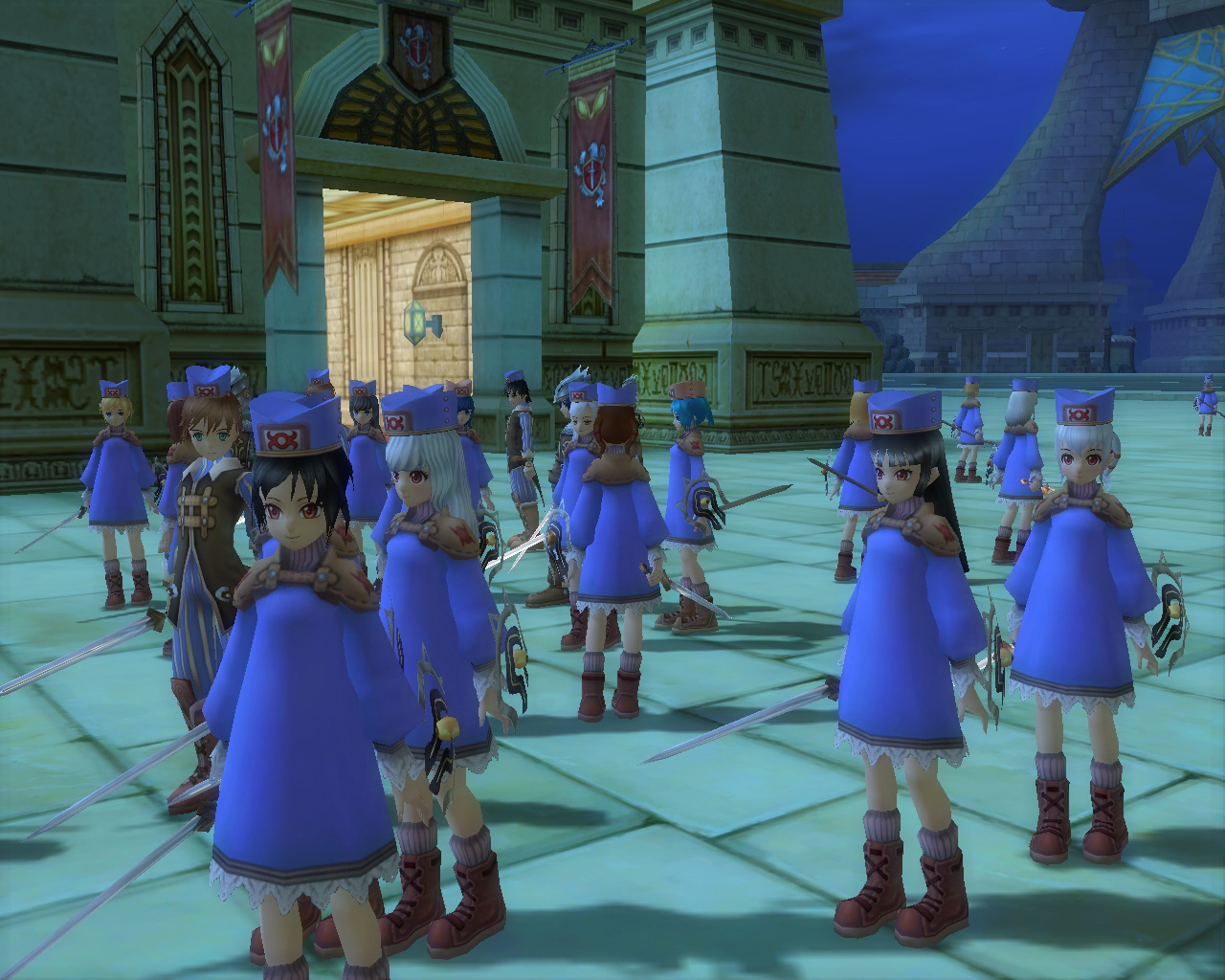 メイジのスキルを教えてくれるNPCの前はご覧のとおり。まるで,というよりまるっきり幼稚園(こんな夜遅くまで起きてちゃだめですよ!)
