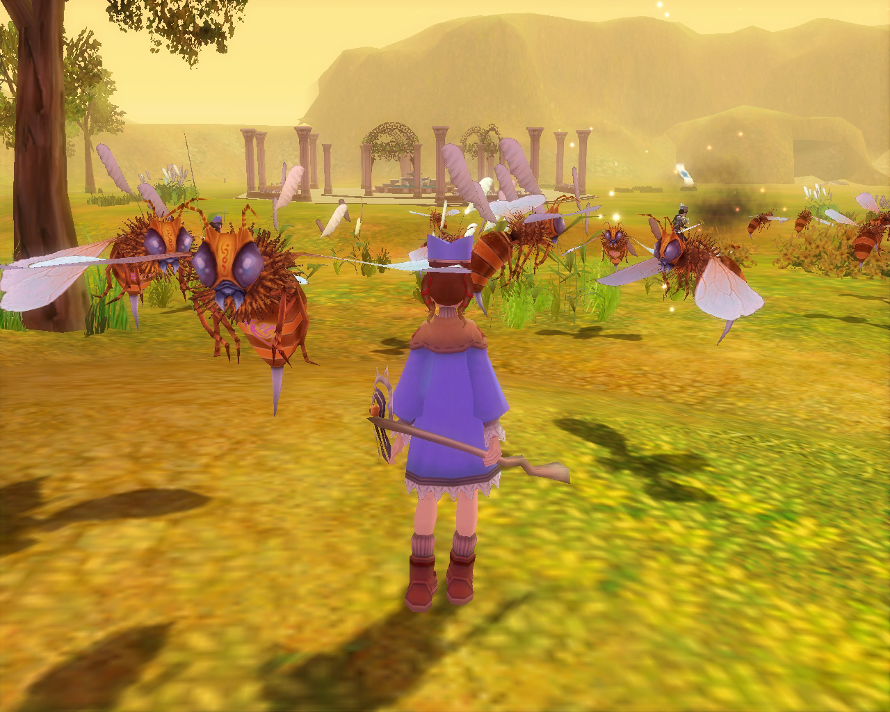 風の草原とヘラクレスの丘に出現する,昆虫型モンスター「ハニビ(左)」と「ローイナゴ(右)」。こうして改めてスクリーンショットを見るだけで鳥肌が立つ