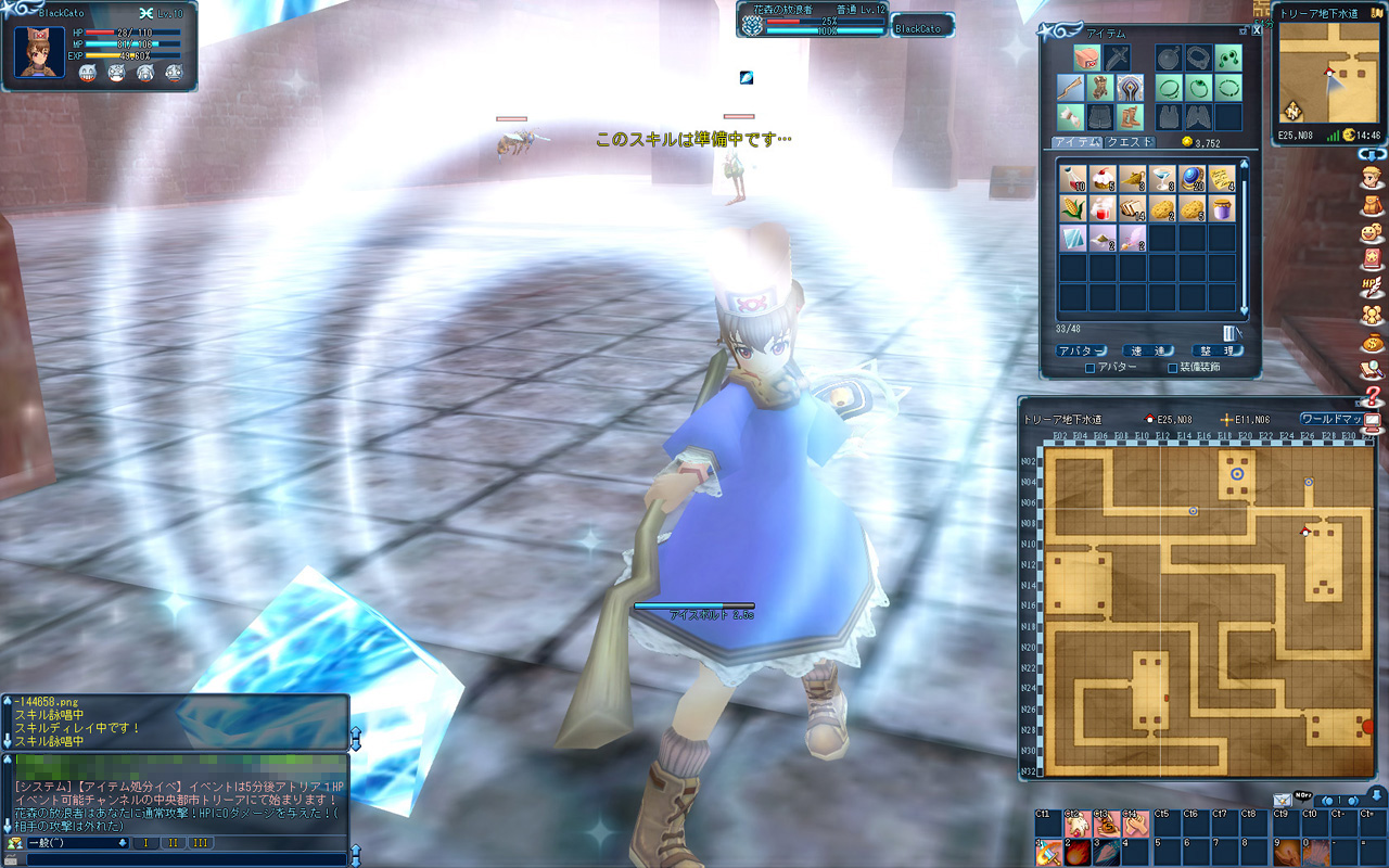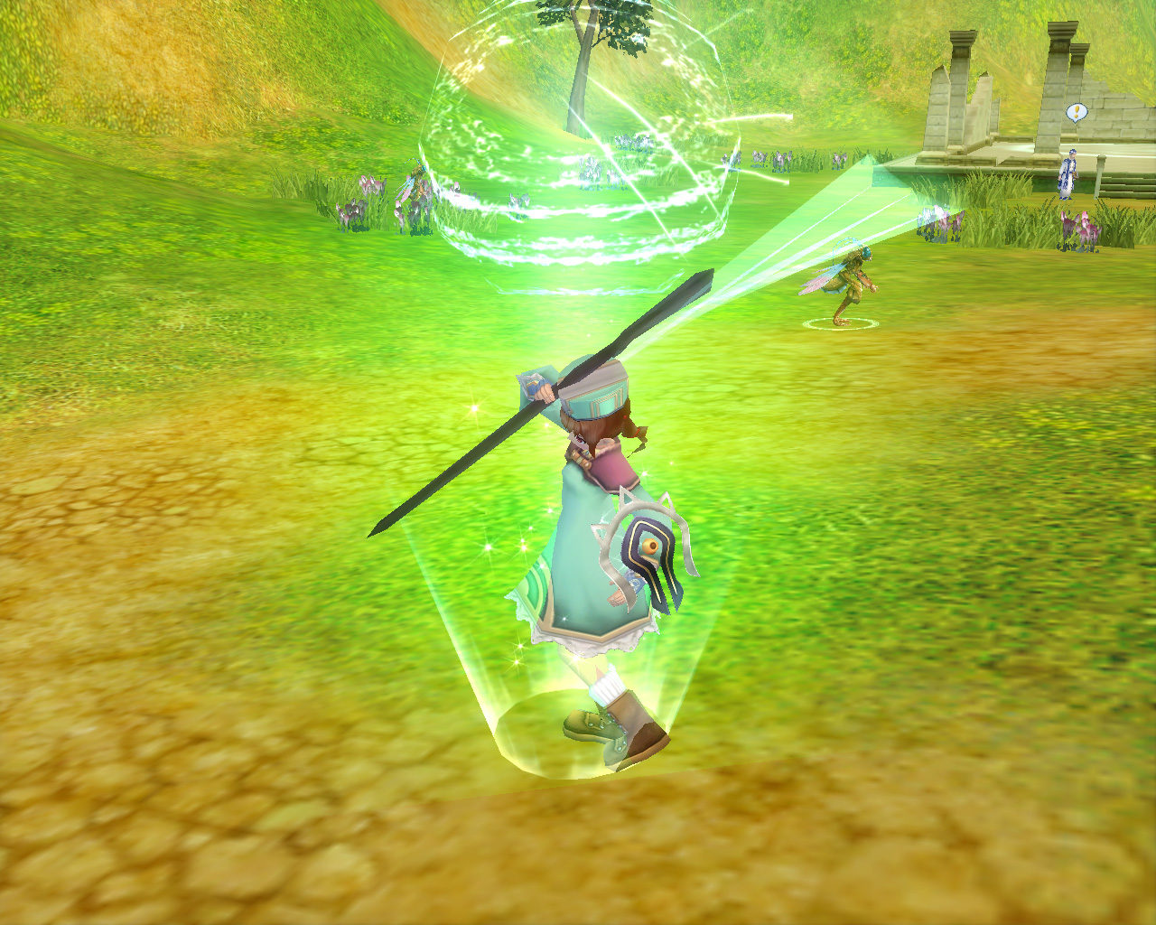 メイジになって一番よかったのは,魔法詠唱中にチュニックの裾がヒラヒラとひるがえるのを見られたこと(このベストショット1枚のために,30枚ぐらい撮影しました)