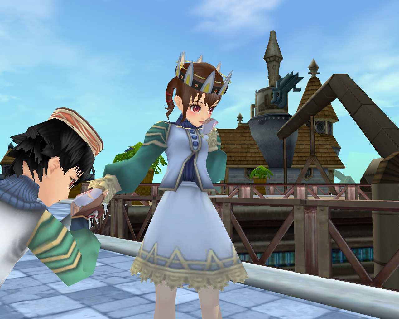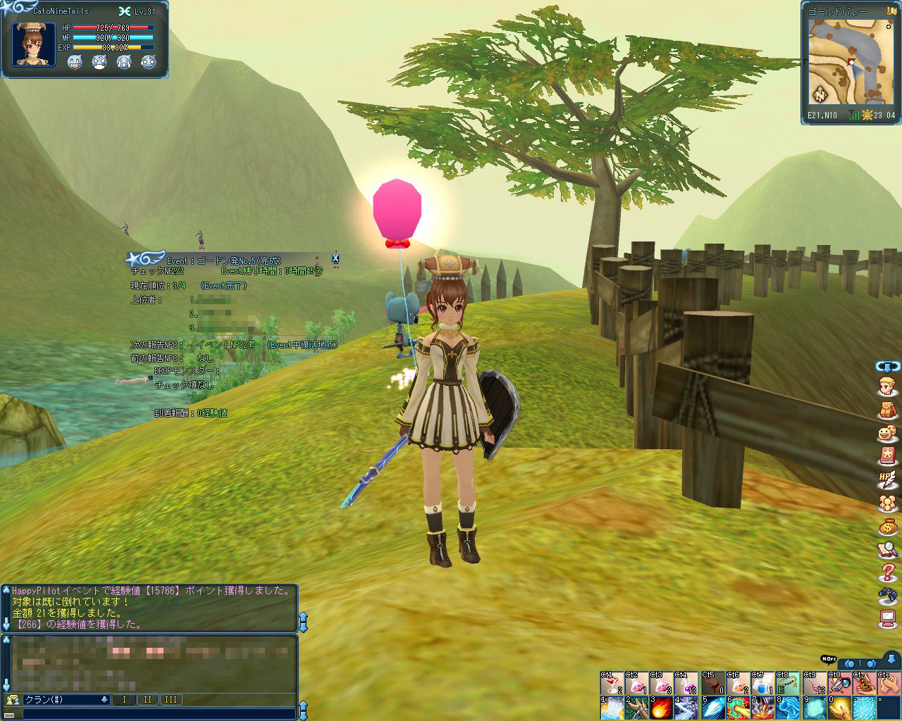 手にした風船は,ただいまイベント参加中の印。二人のNPCに話しかけるだけで,15766ポイントの経験値がもらえた