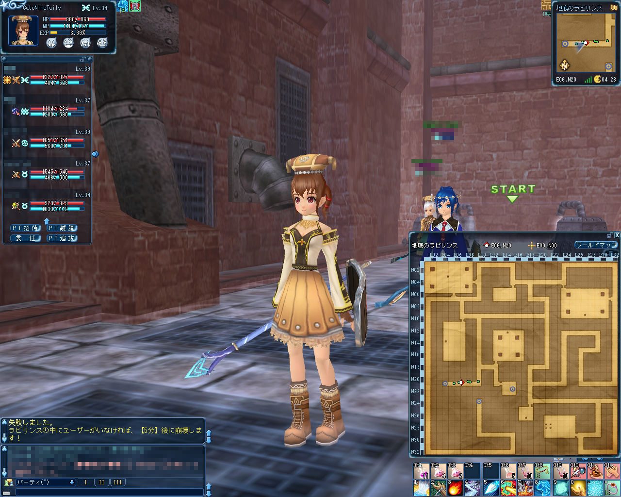 ラビリンスとは地下ダンジョンの一種で,街のすぐ外にある「星石召還台」に3色の「星石」をはめこむと出現する,特殊なエリアである。ラビリンスにはクエストに関わるものと,プレイヤー間で通称「自作ラビ」と呼ばれる2種類のタイプがあり,経験値やアイテムが美味しいのは後者の自作ラビのほうだ。