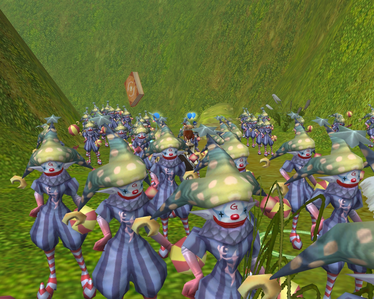 1チャンネルのマップ移動ポイントには,NPCイベンターがご覧の通りひしめいている。自分のイベント担当のNPCを見つけるだけで一苦労だし,さすがにちょっと気持ち悪い……