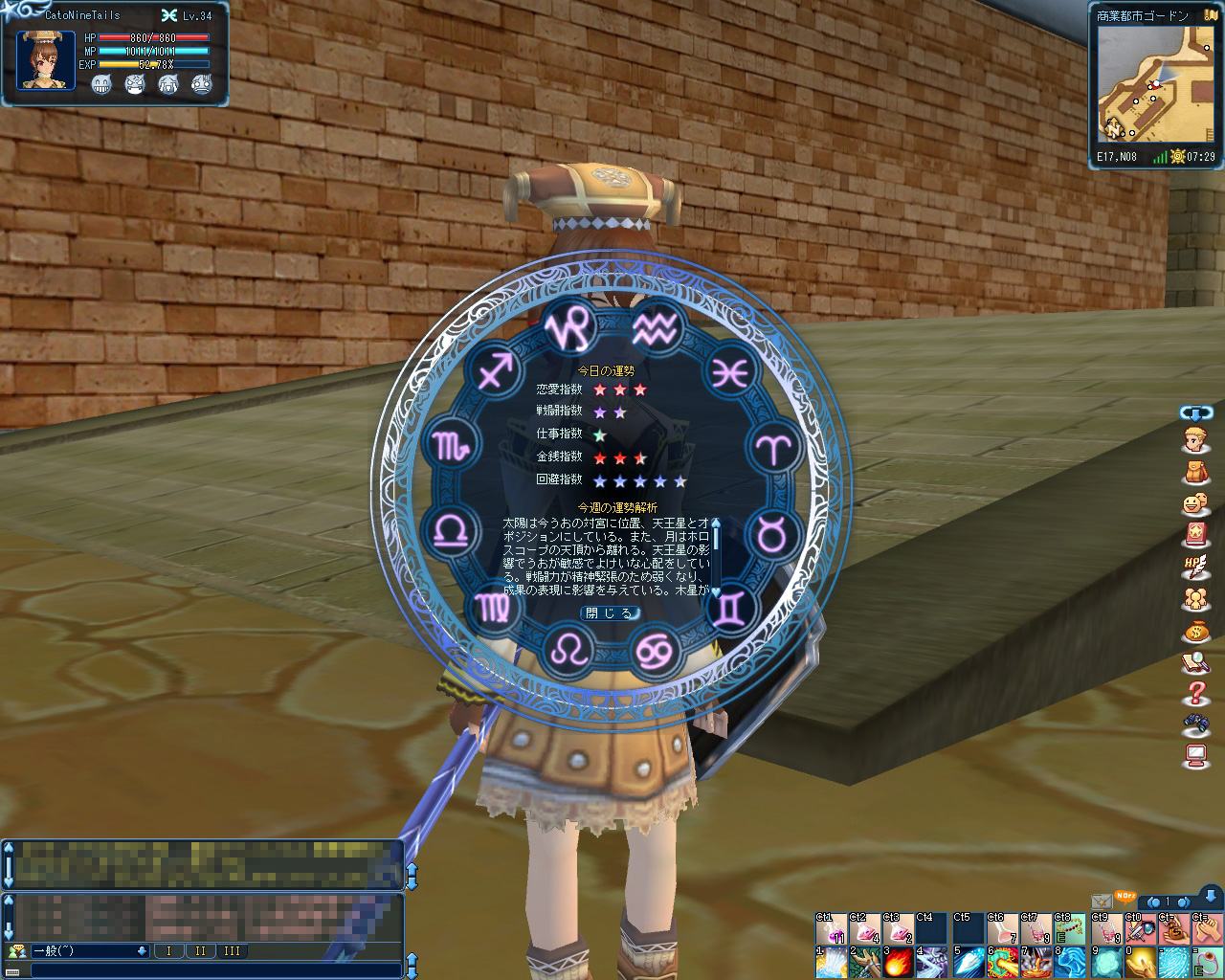 服なんか作ってないで,ひたすら戦えということなのか? 今週は回避指数が最高ランクだが,代わりに仕事指数はまたもや最低だ。とはいえ衣装紹介の手は抜けず,一部のアイテムは,うお座のプレイヤーさんからレンタルしたものである。来週は仕事指数が最高になりますように。