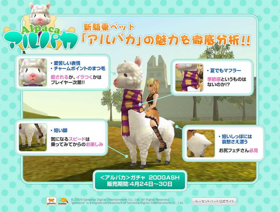「ルーセントハート×pixiv イラストコンテスト」開催,「アルパカ」の騎乗ペットも登場