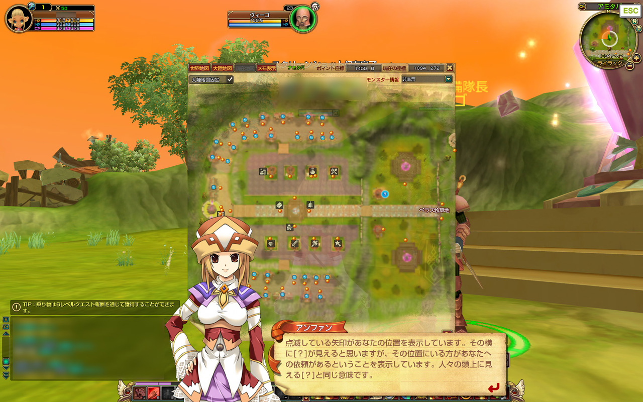 マップを開いてもアイコンが見当たらない場合は,現在のレベルに適したクエストがないということだ。周囲のモンスターを倒して経験値を獲得し,キャラレベルを上げてから再びマップを開けば見つかるだろう。