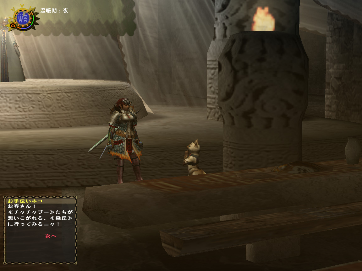 始まりの唄は,チャチャブーの親玉であるキングチャチャブーからの剥ぎ取りによってのみ入手可能である。このときちょっと面倒なのが,キングチャチャブーを出現させる方法だ。方法は何通りかあるようなのだが,ここでは,その一例として,筆者がキングチャチャブーを出現させた方法を簡潔に書いておこう。