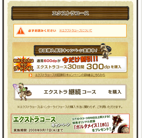 快適な狩猟生活を。「MHF」エクストラコースがおトクなキャンペーン