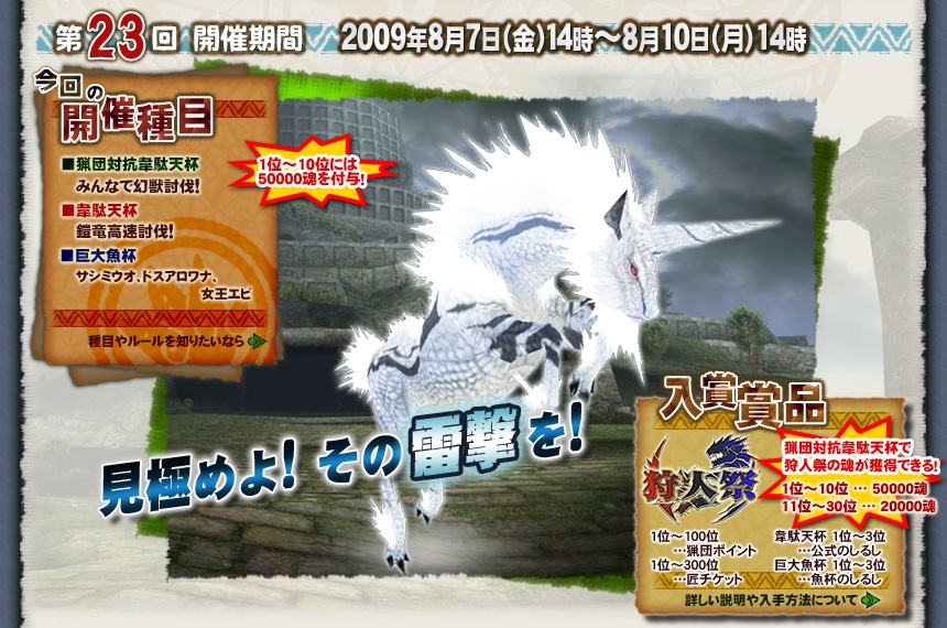 「MHF」第23回 公式狩猟大会「猟団対抗韋駄天杯」でキリンを討伐
