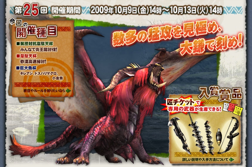 「MHF」,公式狩猟大会で新武器が作れる「匠チケット」を手に入れろ