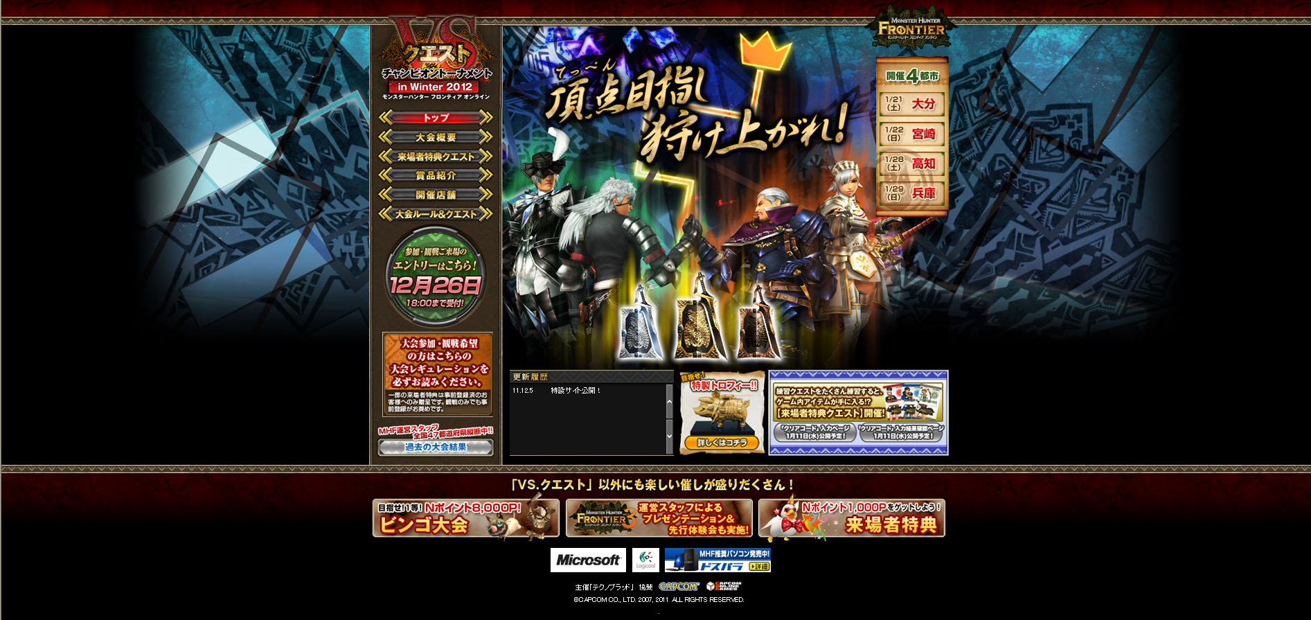 「MHF」,「VS. クエスト チャンピオントーナメント in Winter 2012」を開催