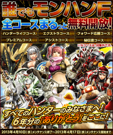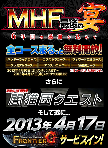 「モンスターハンター フロンティア オンライン」,6年間の感謝を込めた「MHF 最後の宴」を開催。各種コースの無料開放や「闇猫団クエスト」が配信に