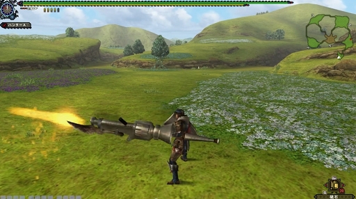 攻撃力は近接武器の中でもトップクラスで,さらに高い機動性を備える武器。その反面,ガードは不可能で,攻撃範囲が狭いという欠点を持つ。大型モンスターにめまいを起こさせるほどの強力な打撃と,溜め攻撃から派生する多彩な技により,変幻自在な攻撃を繰り出せる。■狩猟笛